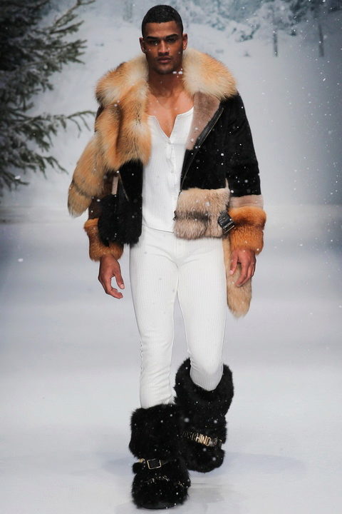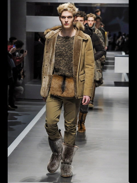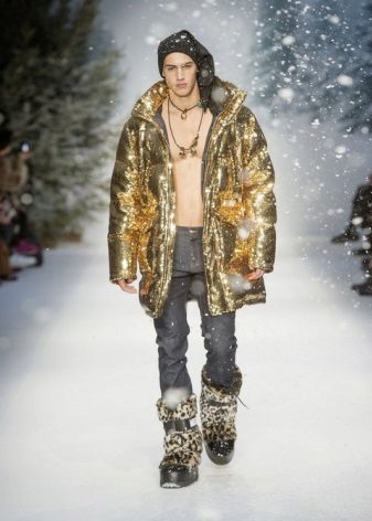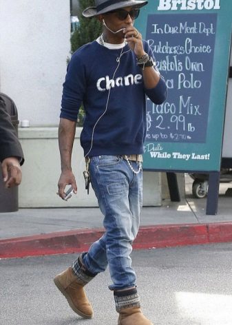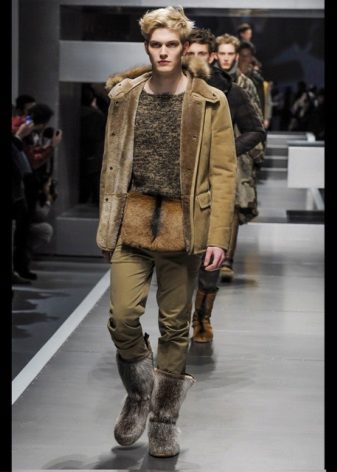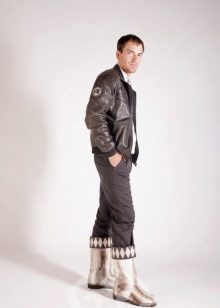 Narrow men's pants tucked into boots with “deer” apparel look very stylish, honest and practical.