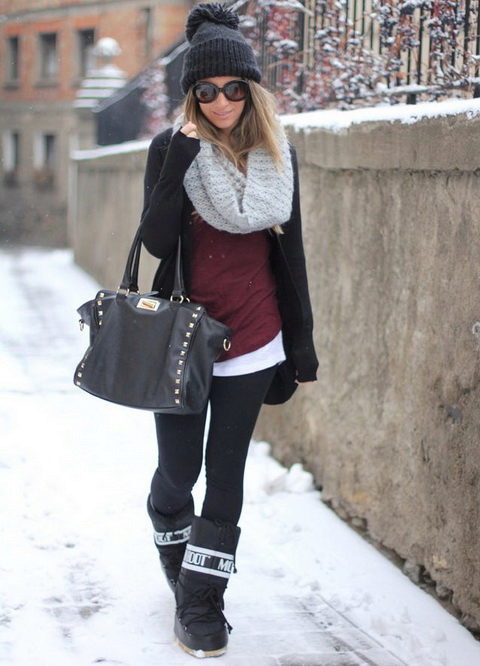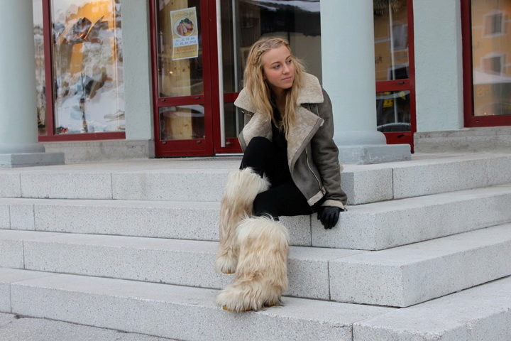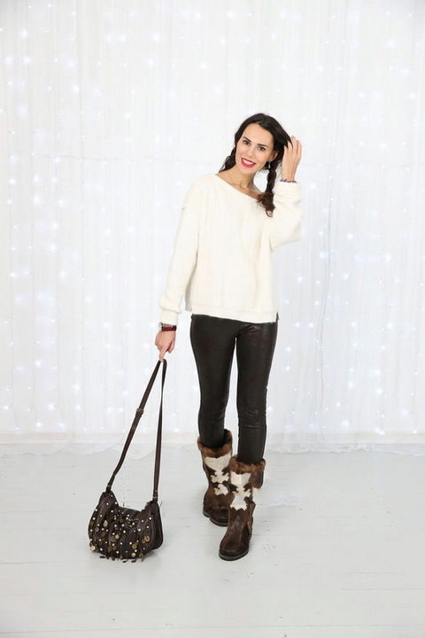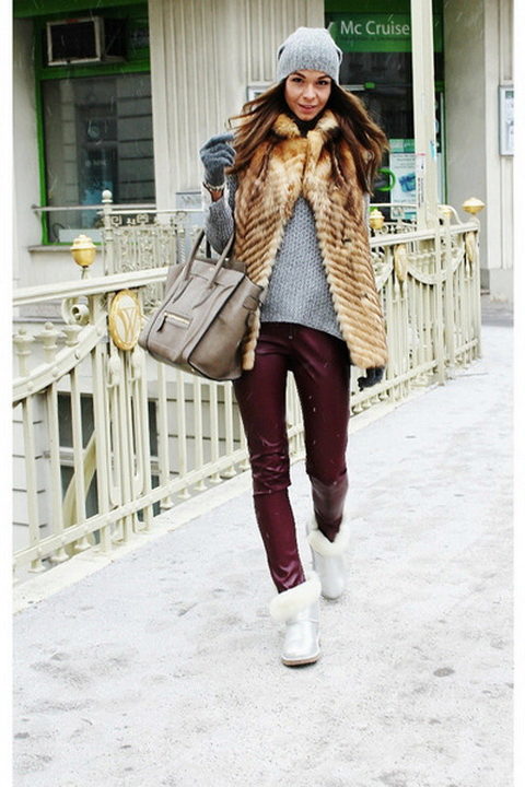 For such cute fur boots fit any tight pants tucked inside Pim: jeans, leggings and even leather pants.