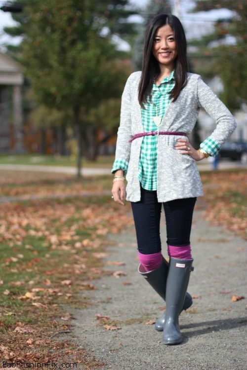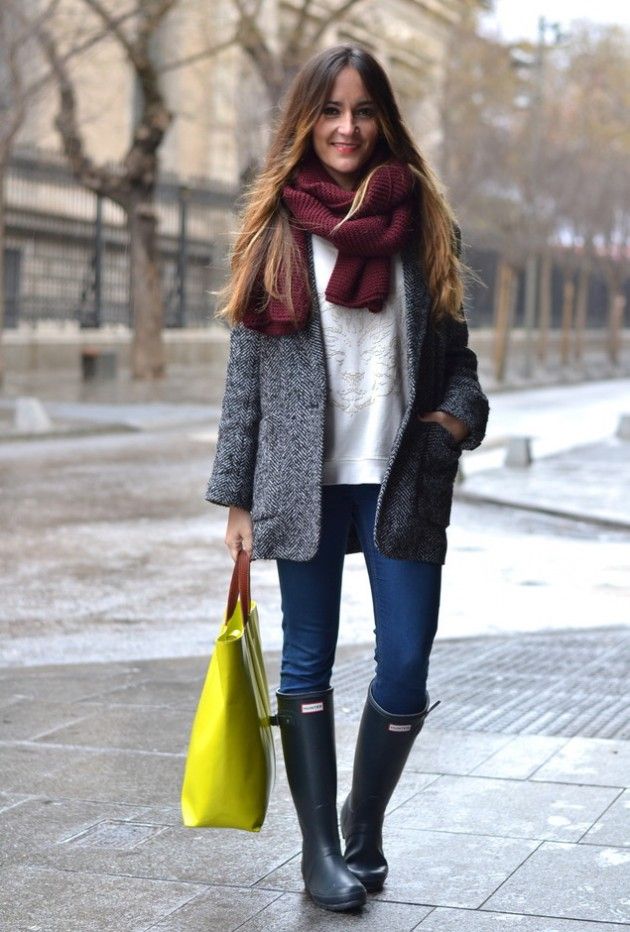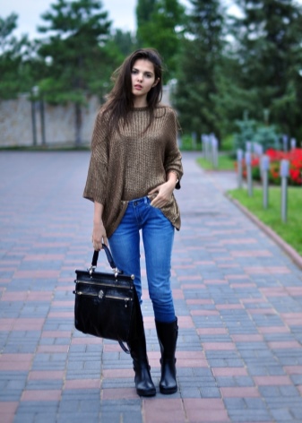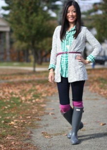 With various rubber boots, all kinds of sweaters, jumpers and turtlenecks look great.They can be monotonous or echoed in colors with shoes. In this case, the lower part of the kit should be monotonous.