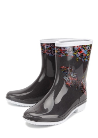 As for ordinary clothes, rubber boots are a versatile option that fits to different sets, if it comes to a business suit or elegant dress. In these cases, rubber boots are selected individually for this image. Most often for this purpose boots of classical design and monophonic coloring are used.