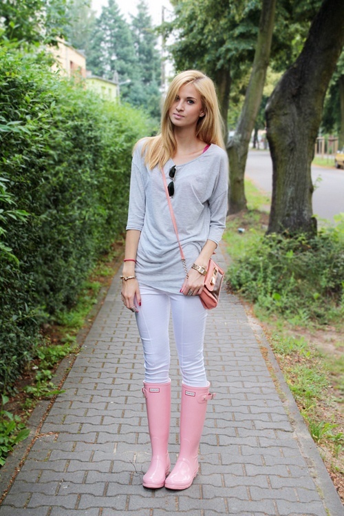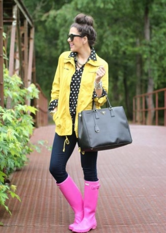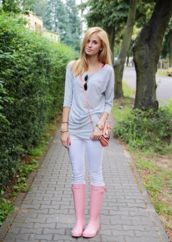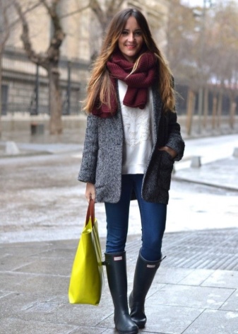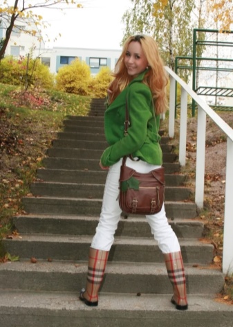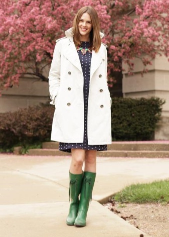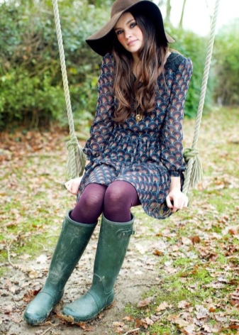 - Secondly, rubber boots should be aesthetically attractive, because they are combined with various options: dresses, pants, jeans, outerwear. The image should always look harmonious and attractive.