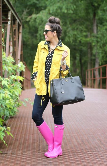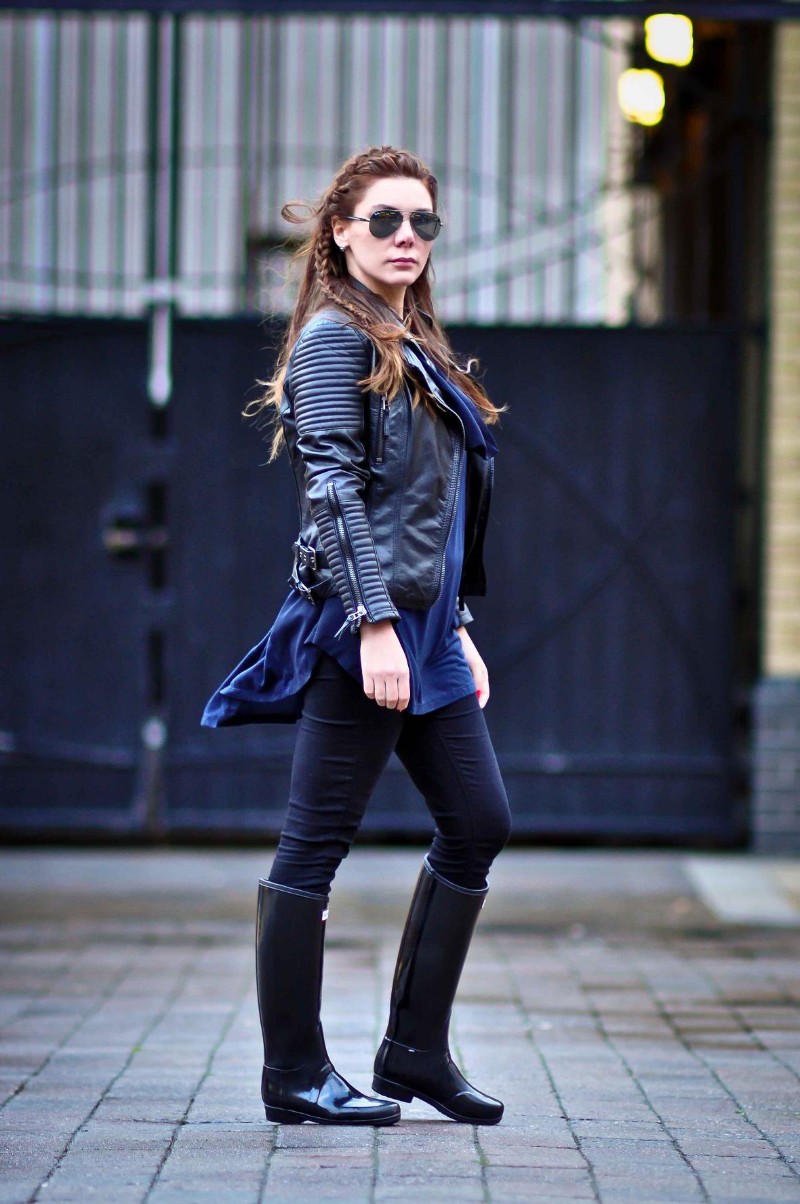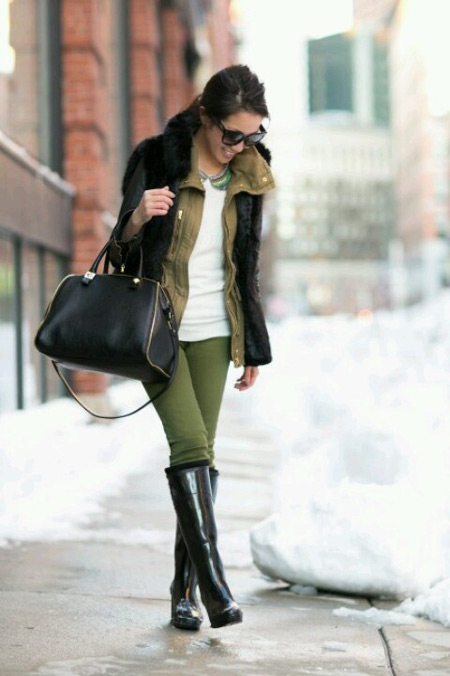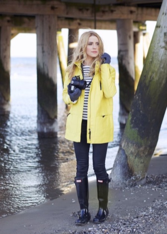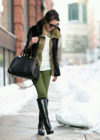 Rubber boots harmoniously look with almost all options of outerwear. It can be a cropped straight coat, an elegant flared coat, a leather jacket, a youth jacket, a youth bomber jacket, a stylish parka, and a light windbreaker.