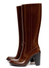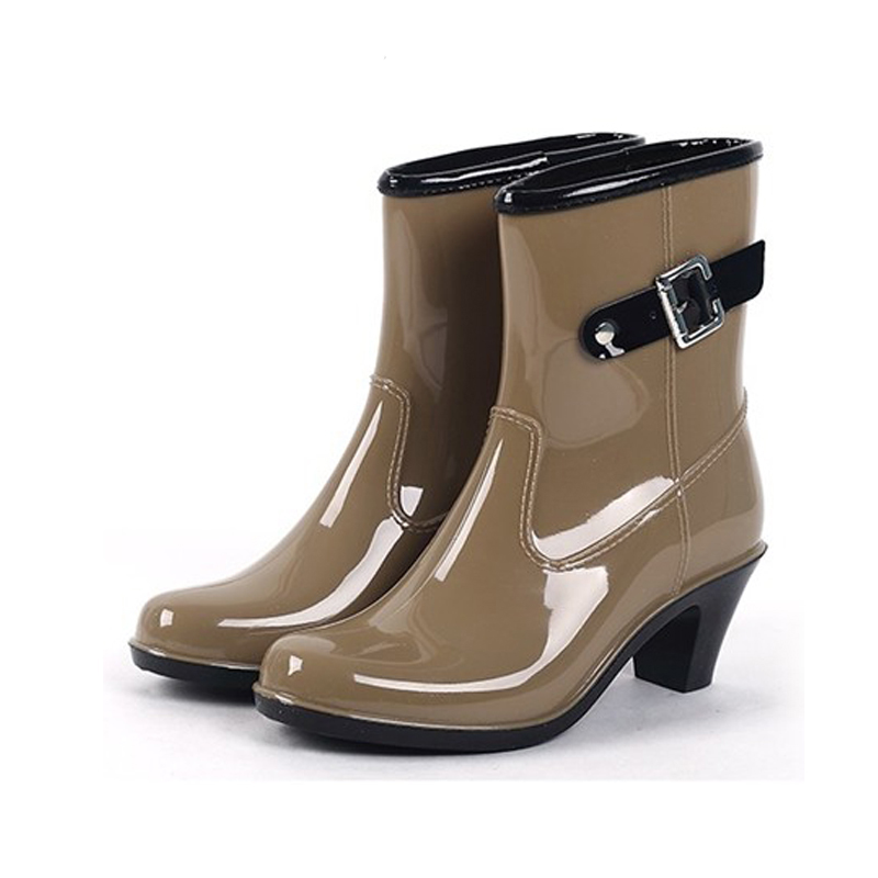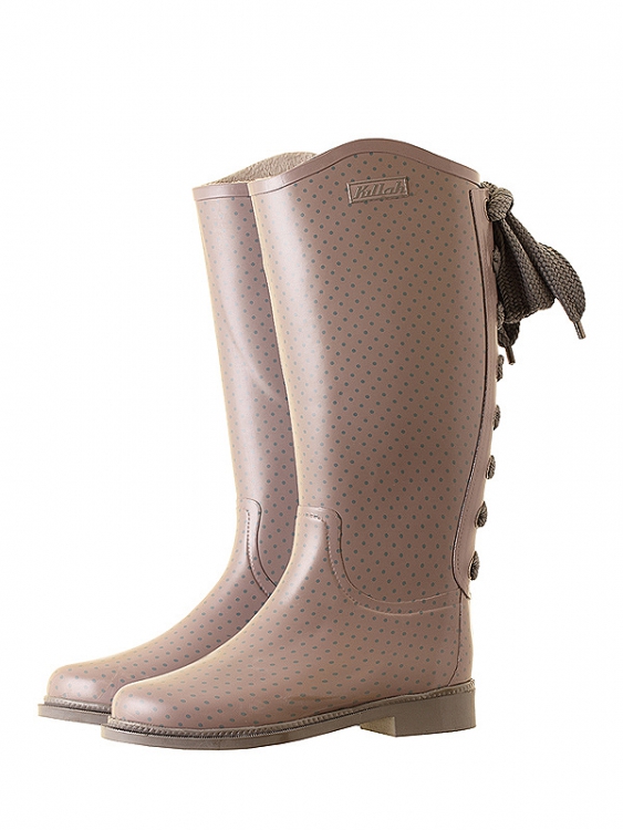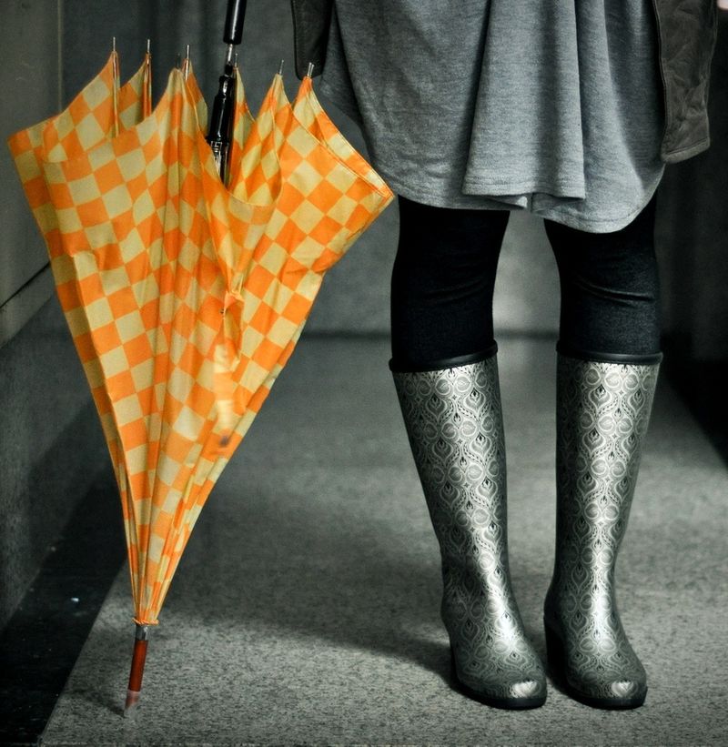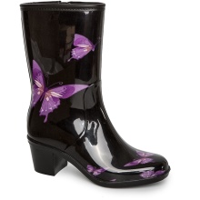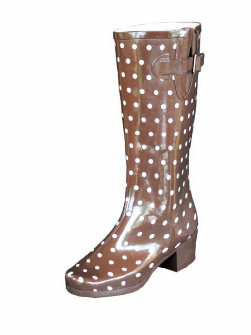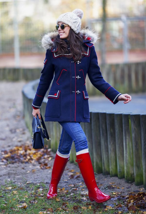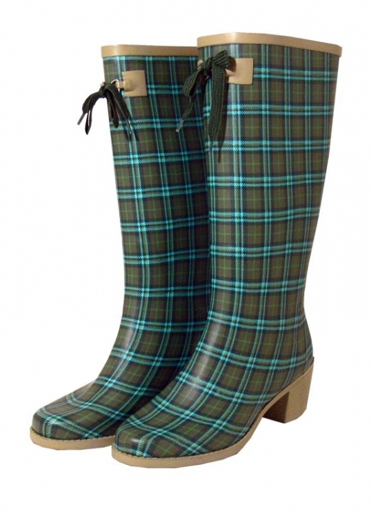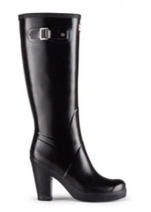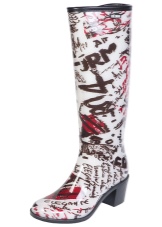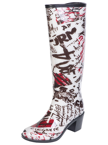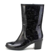 Some experiment with the heel: it can be high and thin or medium and stable. Square low heels make rubber boots very comfortable.