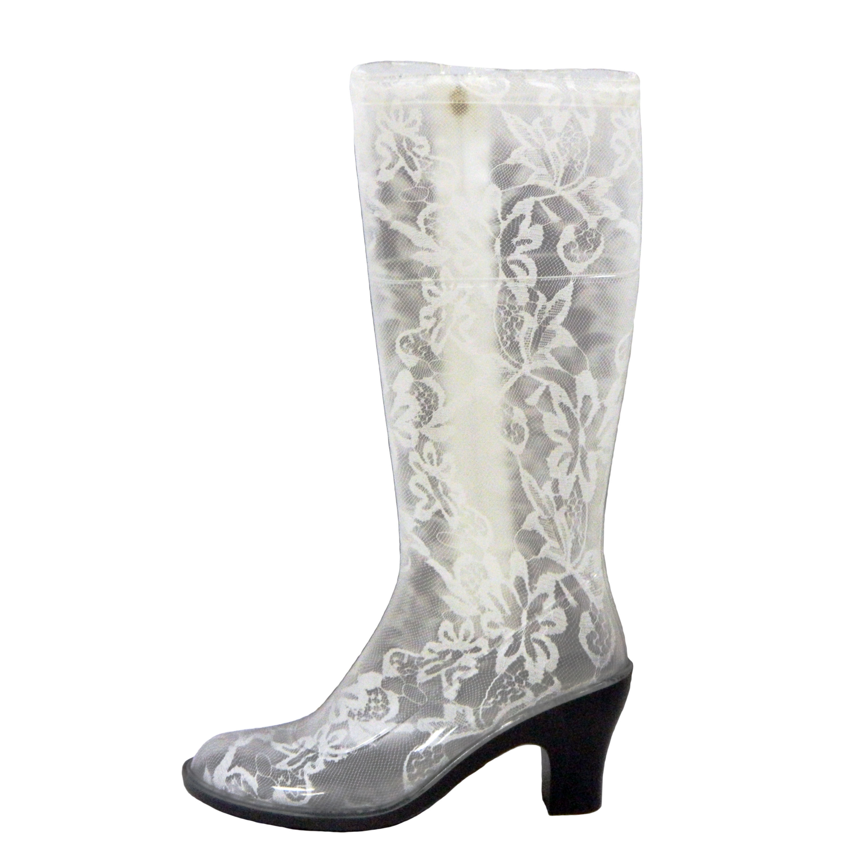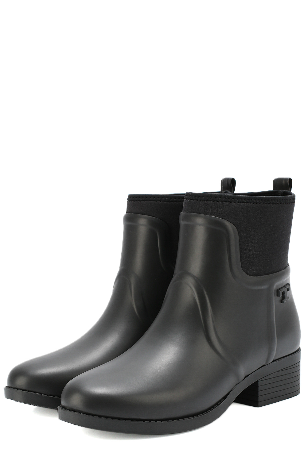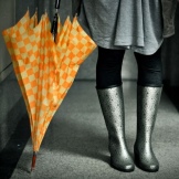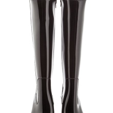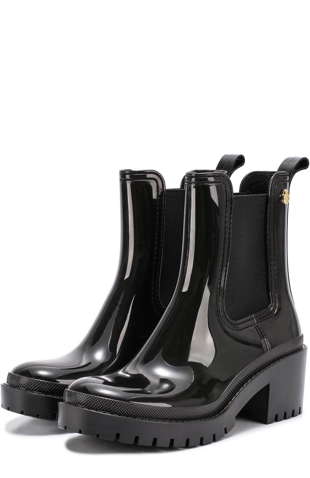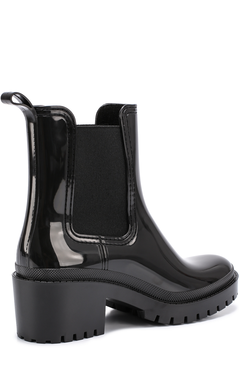 Some experiment with the heel: it can be high and thin or medium and stable. Square low heels make rubber boots very comfortable.