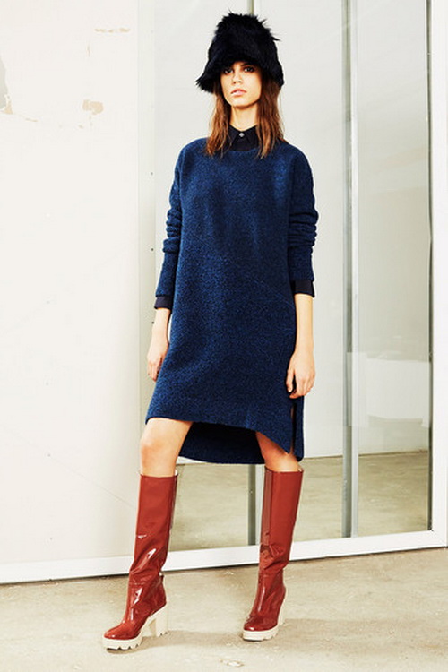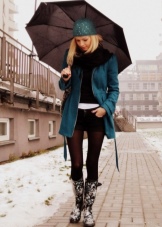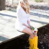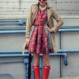 Rubber boots with various dresses look great. Their style should not be strict, it is better to choose models in the style of casual or elongated tunic, not below the knee. Tights to this image should be chosen tight.