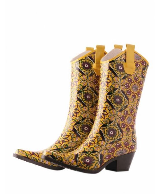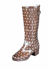- Not only solid models are able to create a mood. Boots with various prints look very original. Animal colors, polka dots or stripes, flower motifs - any variations are perfect for rubber models.