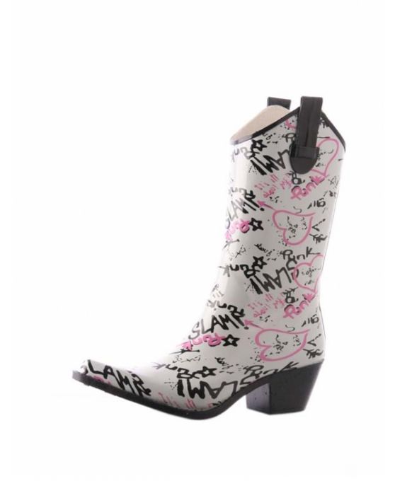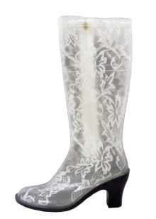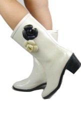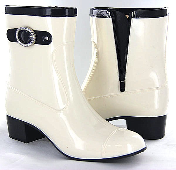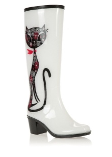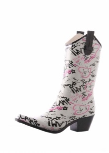 - Festive and elegant looking white models of boots made of rubber. White color is very relevant this season. Combining white boots with other details of the wardrobe of light colors, the girl will look very feminine and stylish.