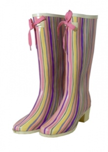 A variety of decorative elements will also allow you to choose the original pair of rubber shoes. Rubber boots with buckles look quite interesting and stylish. Feminine and elegant boots with satin ribbon lacing will be an excellent complement to the romantic look.