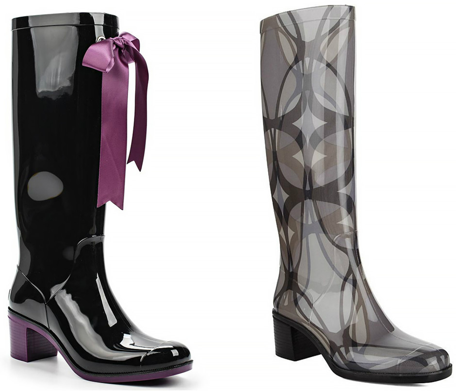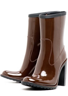 Rubber shoes are a real salvation in periods of off-season, when it often rains, slush or melting snow everywhere. Designers offer many options for this waterproof footwear, including rubber boots with heels. Thanks to a large variety of models and colors, any fashionista can pick up a pair of boots to suit her outfit and remain irresistible even in the dirtiest and capricious weather.