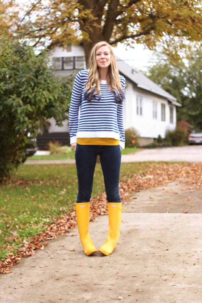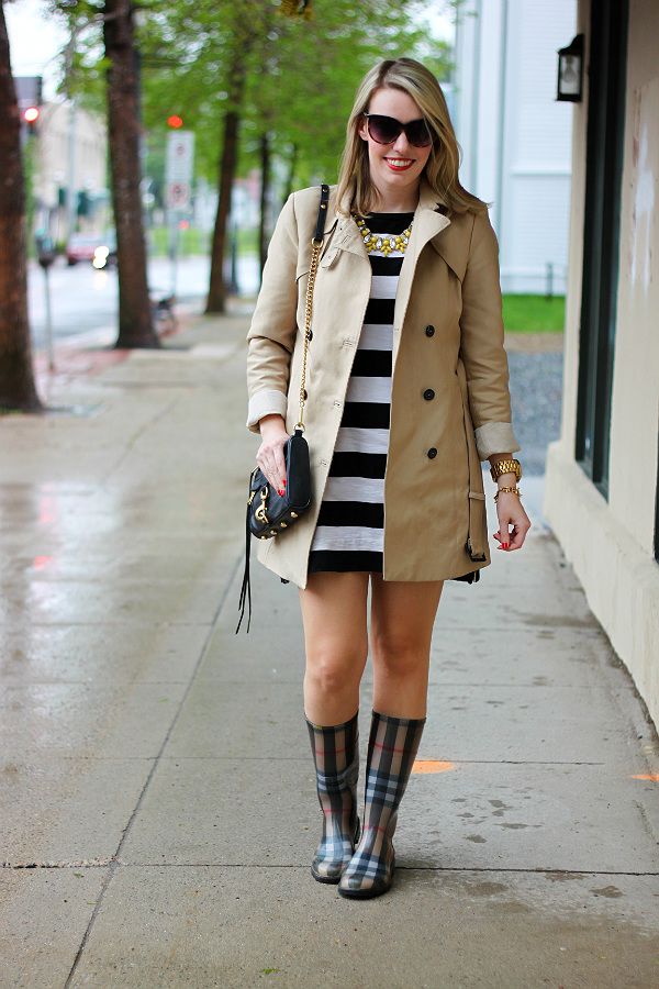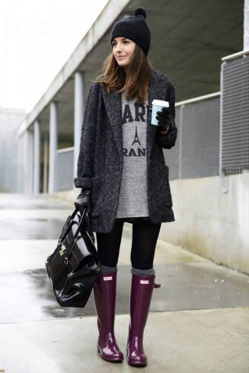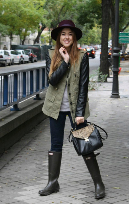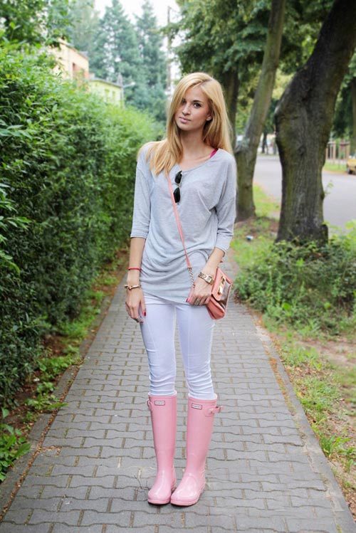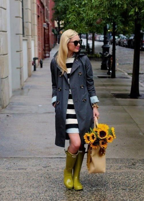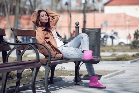 Competently combining rubber boots with different items of clothing, you can create many stylish images.