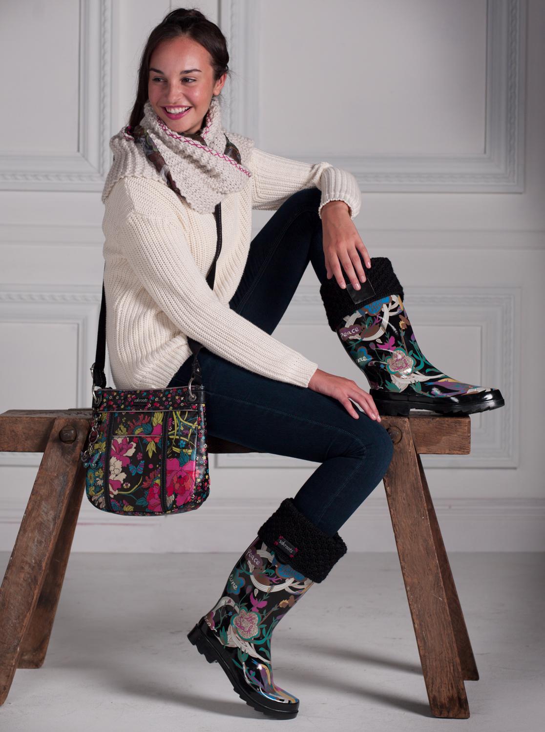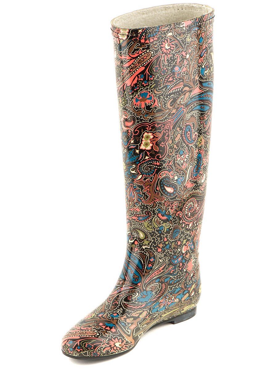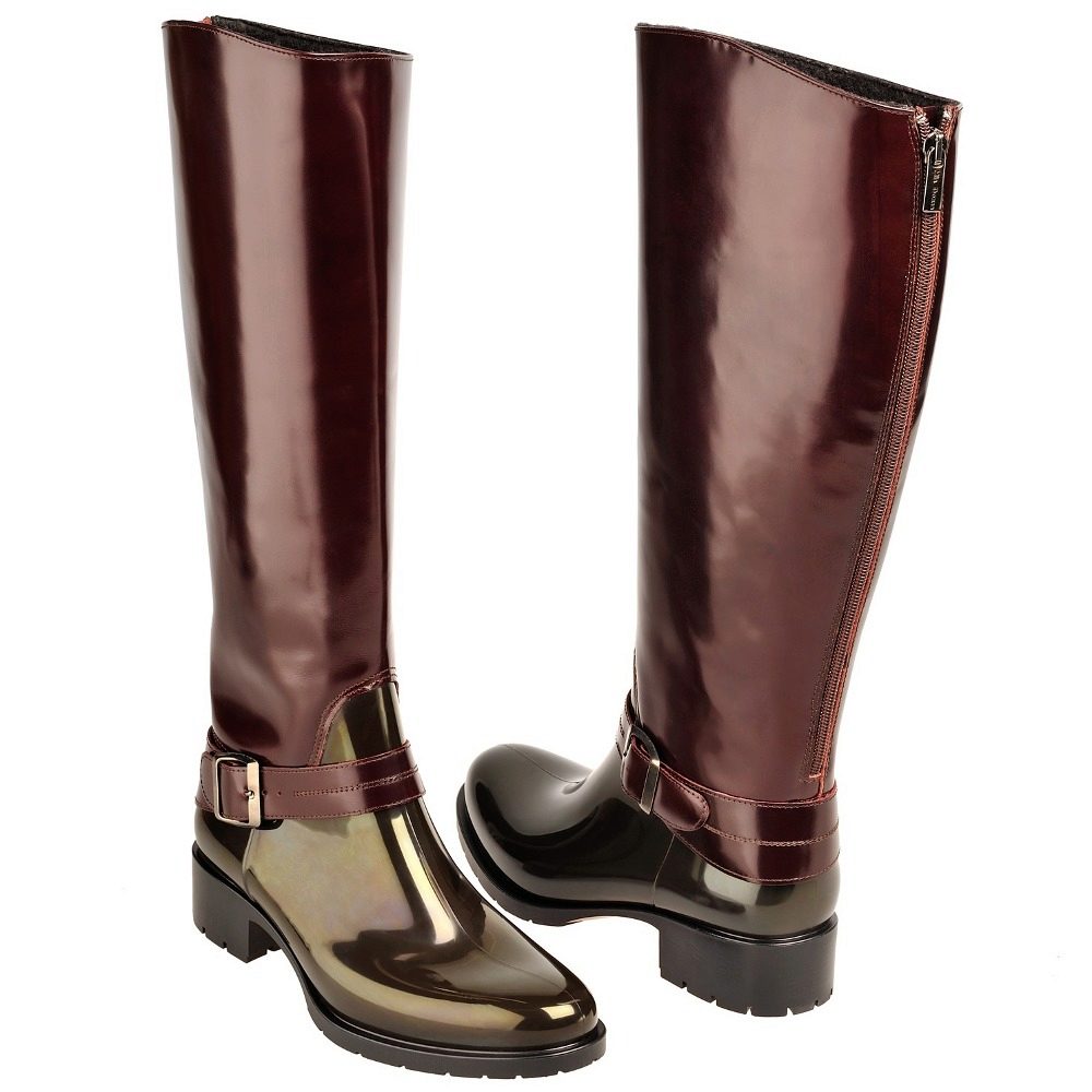 Trademark Burberry offers laconic black models as well as plaid boots. Italian brand Gianmarco lorenzi presents luxury options with a trendy quilted top, equipped with a zipper and heel. Interesting solution from the youth brand Keddo - rubber boots with a nice pattern of Scandinavian and floral motifs.