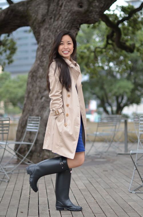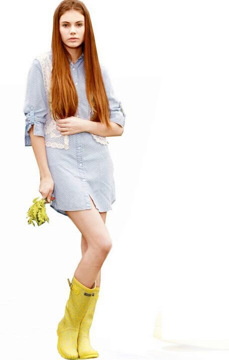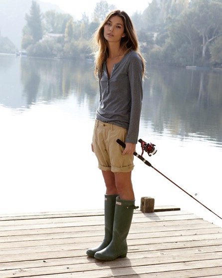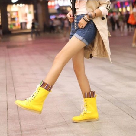 High rubber boots look great in combination with shorts of any style: both close-fitting and more loose. To make the ensemble more stylish will help leggings or stockings.