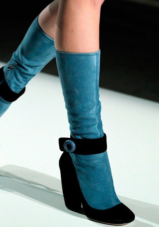 With this shoe look good jeans of any style. Narrow skinny options can be tucked into boots. You can also wear plain or colorful trousers. Shorter trousers and breeches are combined with shoes with a steady heel.