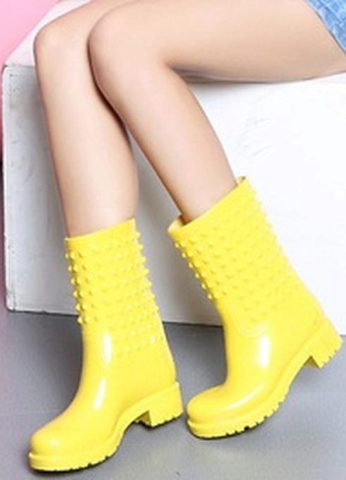Today, any fashionista has the opportunity to purchase rubber sapodki for your taste and color. These are all sorts of monophonic options: classic black and white, also red, green, yellow, orange, blue - the list goes on and on. Made in bright juicy color, especially long, rubber boots will draw attention to the female legs, emphasizing their harmony. Neutral shades are also in fashion - delicate pink and cream tones, often such models are additionally decorated with ribbons and miniature buckles.