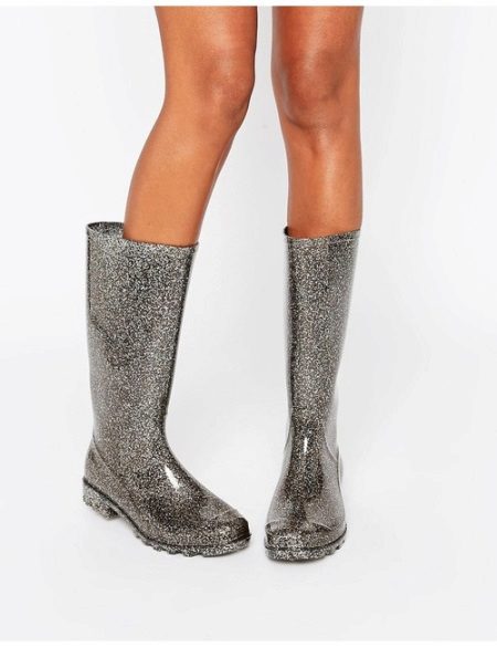 Fashionable boots made of rubber can have a different execution of the sole. Traditional flat is very practical. Girls of high growth fit a high platform. A stylish solution - options on the wedge. The high rubber models with a heel, which is quite high, look impressive.