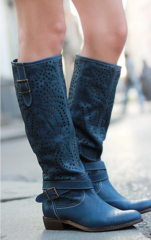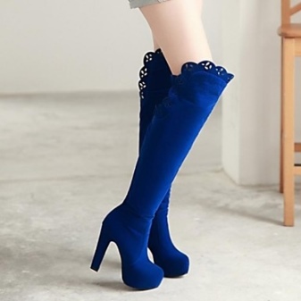 Sexy blue boots with high heels and platform will visually make a fashionista taller and slimmer. Such footwear will become fine addition of an evening or bright daily dress.