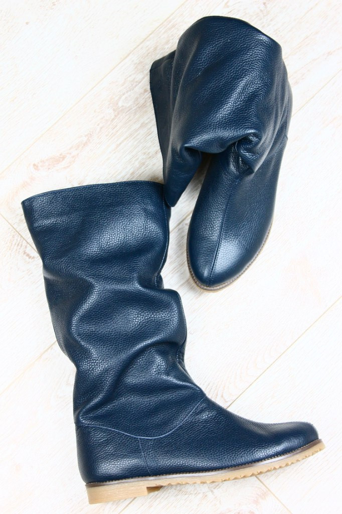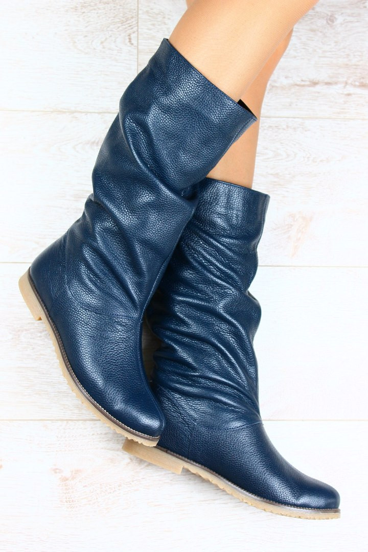Practical and durable leather will never go out of fashion. Charming models of blue will never go unnoticed.Leather boots look very bold and bold. To choose an outfit for such shoes should be very careful not to get a vulgar image.