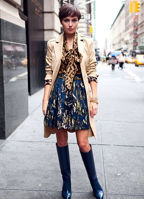 - with bold boots, blouses of pastel colors complemented by straight and fitted jackets and jackets will look perfect;