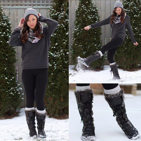 Scarves are welcome, and here you can show imagination and supplement the lack of bright colors in the shoes with your own vision of life. The scarf can be any, even the most incredible, color, different lengths. Caps are also suitable for all kinds of fur, leather, knitted. With and without pom-poms.