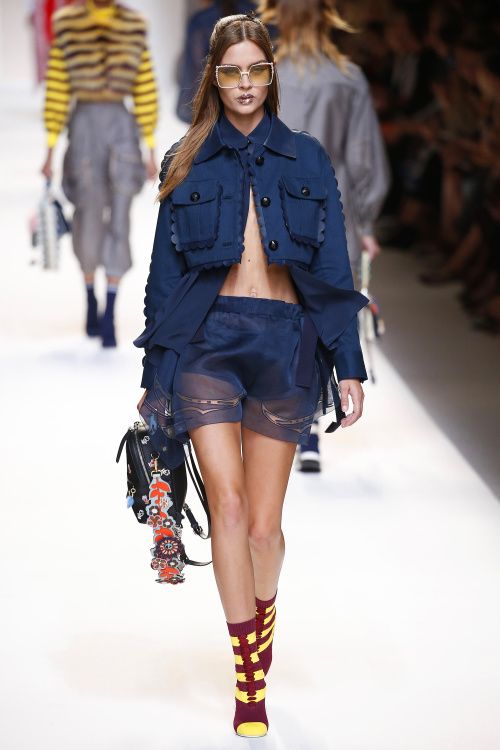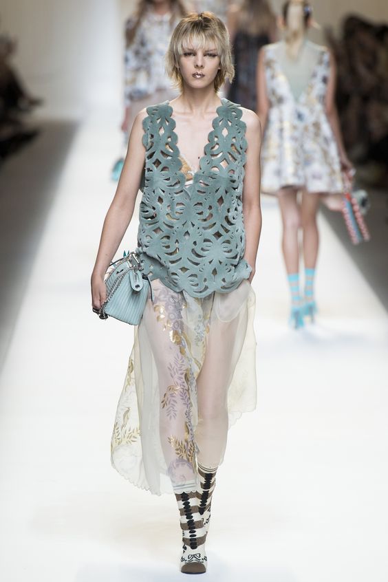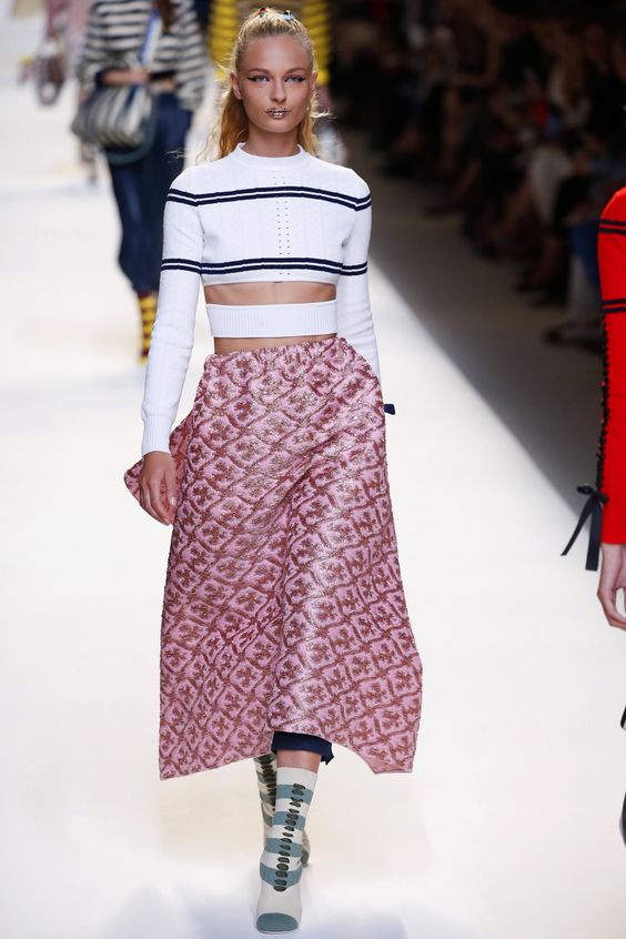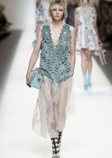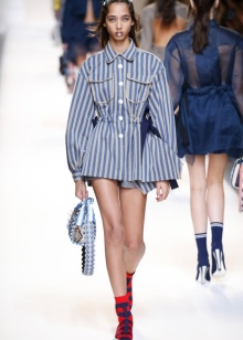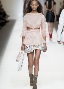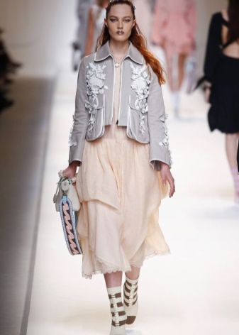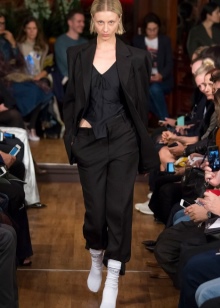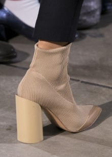 Designers propose to combine such boots with sports suits or with shortened pants, so that the gum of the shoes can be seen. Long pants can be tucked to show extravagant shoes.