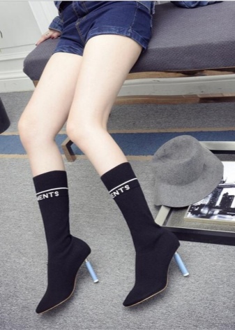 It has long been no surprise with socks, worn with sandals or shoes. But French designers went further and transformed socks into boots. They are narrow stretch shoes and look like ordinary socks. But the main feature of such shoes is a heel resembling a cigarette lighter.