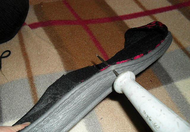 To attach the sole to the product there are two ways. The first, the easiest - to connect the toe and sole in any convenient way. And the second is to make small holes around the perimeter in the sole and start knitting from it.