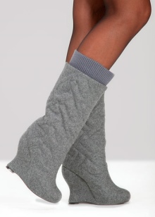 - If there is a need to be indoors in boots, but without outerwear, it is necessary to choose knitted warm soft dresses or sweaters with wide short skirts / narrow trousers. If you can not do without jeans, then only black or gray variants are allowed.