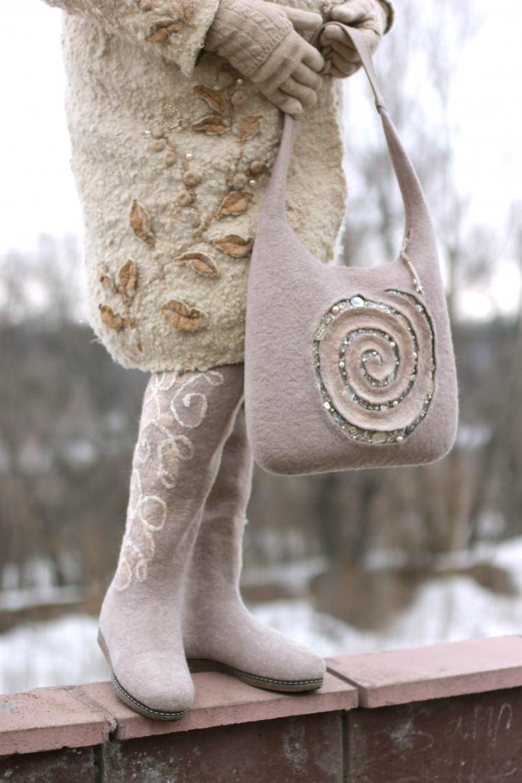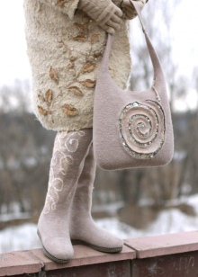 - As for the choice of accessories, you need to try to find a felted purse, felt, leather (not smooth, but rough and tanned) or fur.