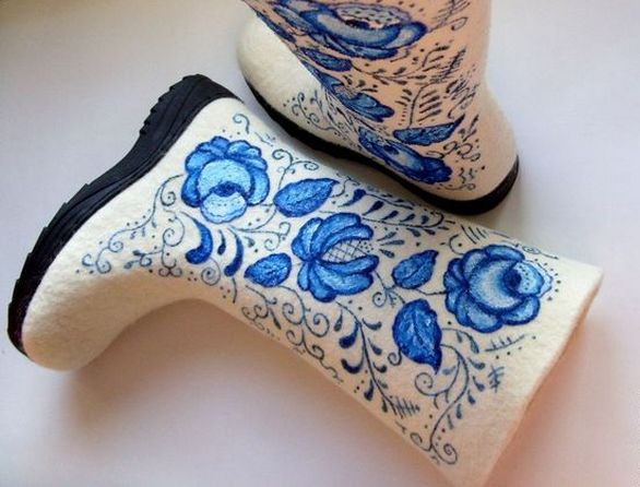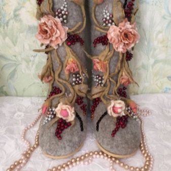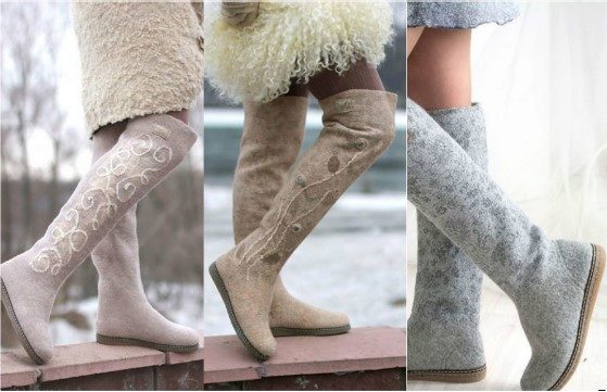 - Combined boots boots perfectly suited for the conditions of the Russian winter. In such models, wool / felt can be combined with a huge amount of materials with excellent texture. Not only materials can be combined, but also colors.