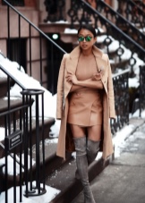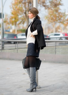 The skirt can be used to create a strict look, especially in combination with jackets or jackets. Short youth skirts are suitable for combination with high boots and boots, as long as their hem does not hide the edge of the shoe. With the help of a cozy knitted or knitted dress you can embody business or romantic style. From the combination of short dresses with boots it turns out a fatal image.