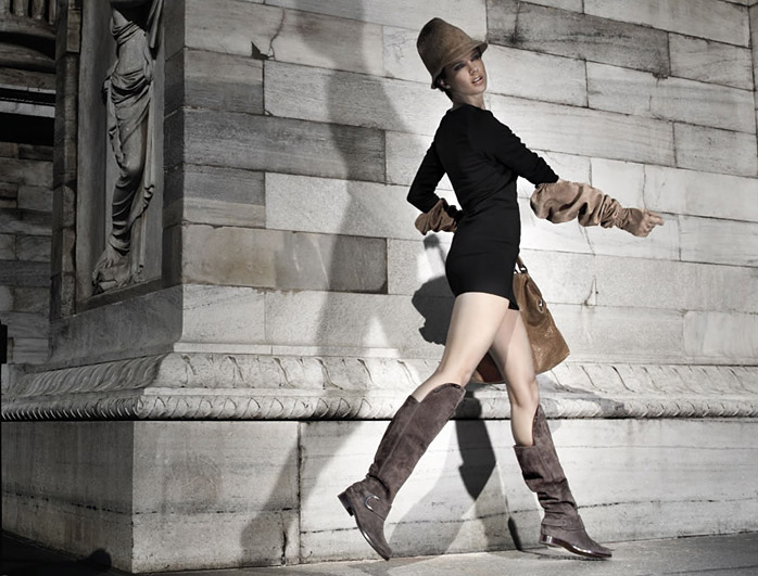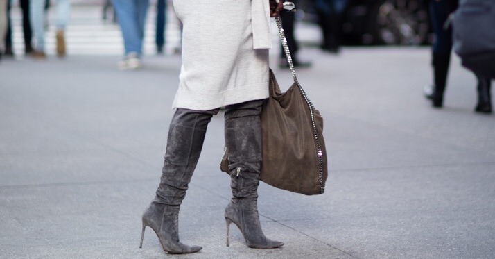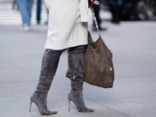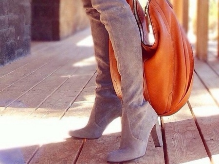 - Gray shoes visually increase the volume, so high boots are well suited for those who have too thin legs. And in order not to focus on full ankles, you should wear shoes without any decor in these places.