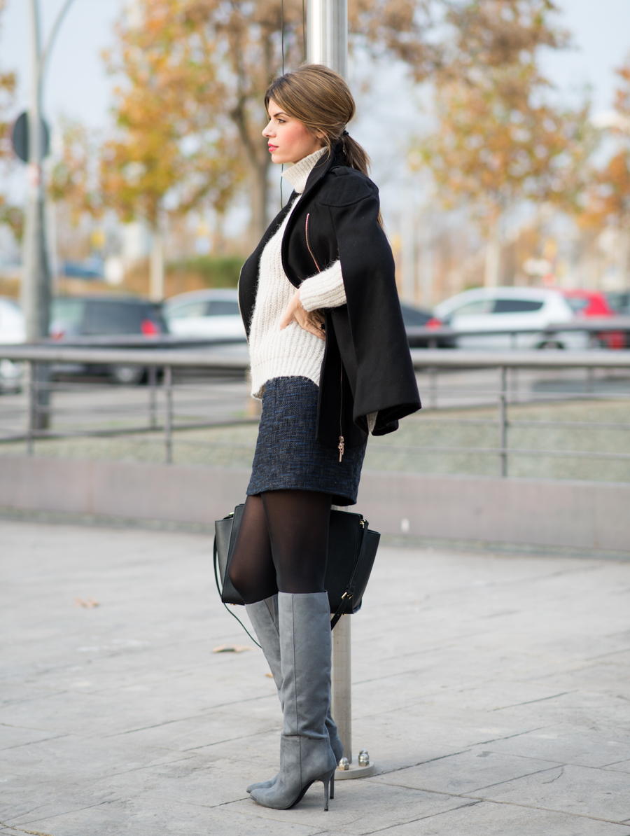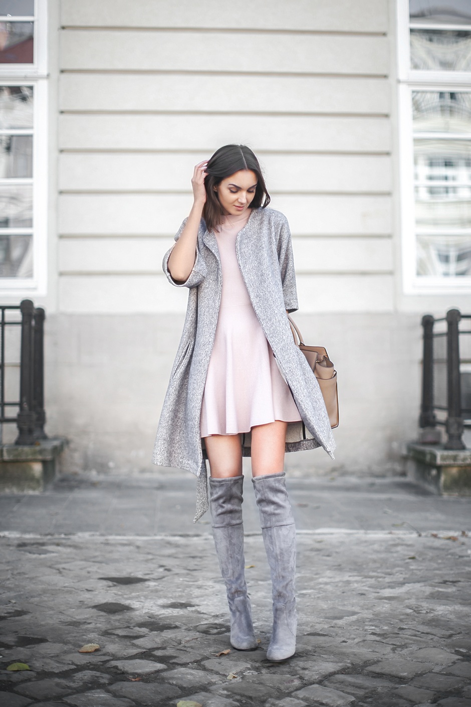 Gray will suit both the brightest color and faded. However, with some shades, it looks the most interesting. These suede boots can complement a set made up of lighter or darker gray clothing. The use of several shades of the same color makes the set deeper in saturation.