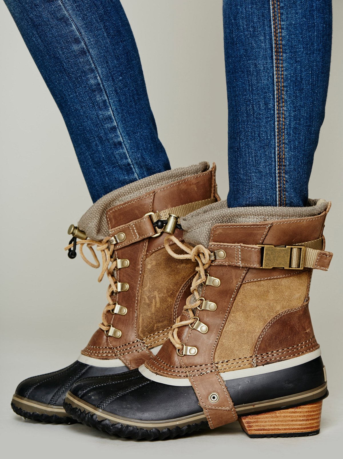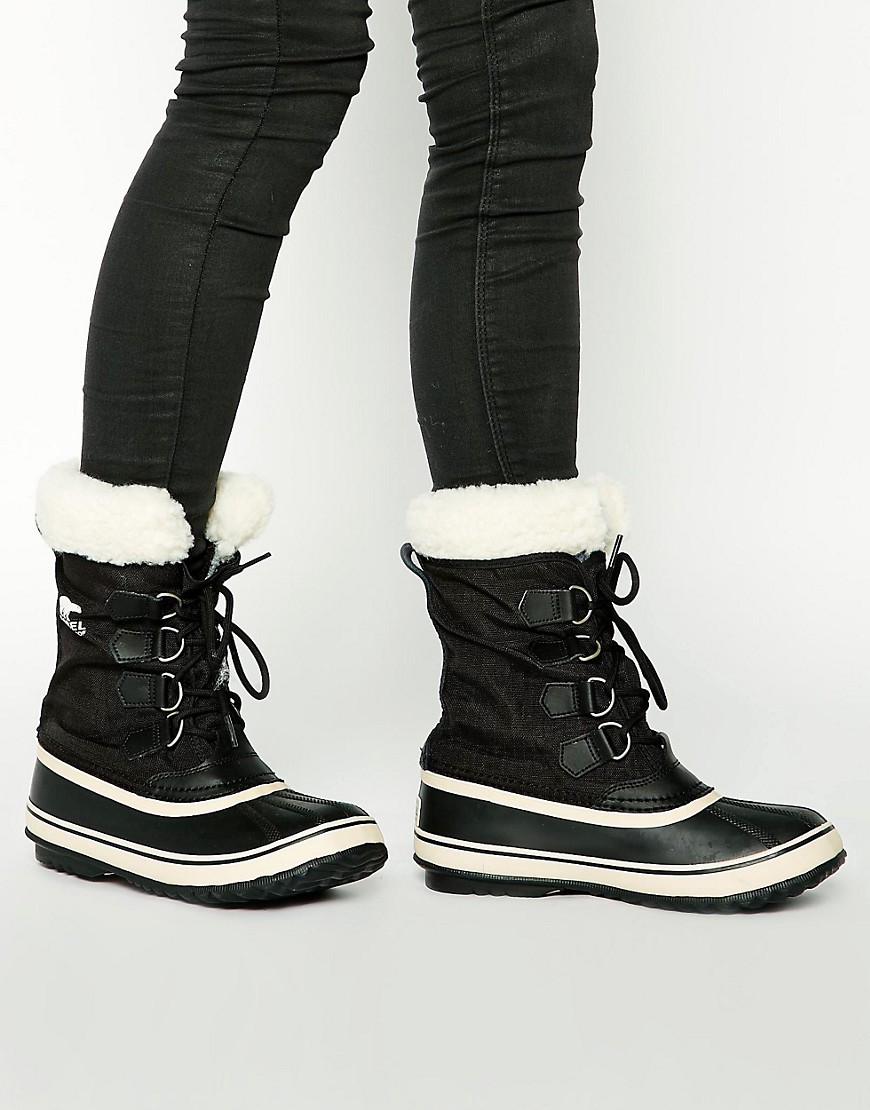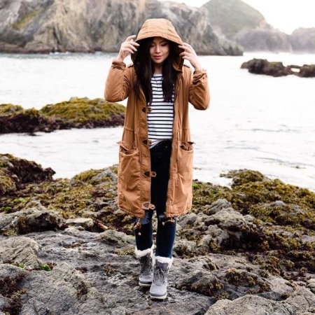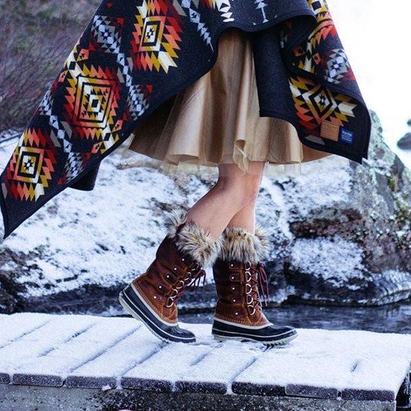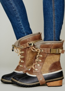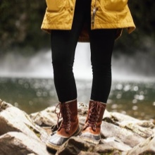 Rough, but still attractive appearance is fully compensated by protection from any weather. Achieve it with the help of materials used - natural leather on the outer part, wool insulation from the inside, rubberized soles. Sorel boots withstand temperatures as low as -75 ° C due to the technology used in their production. It is enclosed in three-layer liners, which ensure the removal of moisture to the external surface, a reflection of body heat and its preservation in shoes.