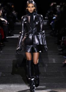 Sometimes designers are experimenting, and boots can be made of suede with rhinestones or embroidery. Or leather with rivets. Of course, these boots dictate the image.