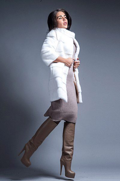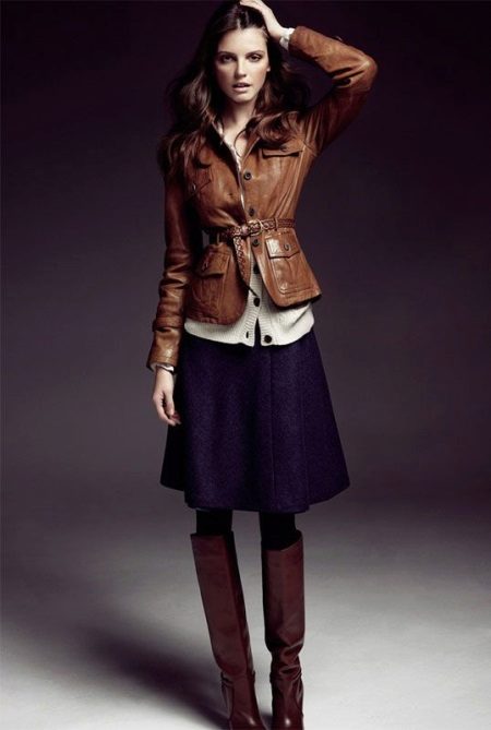 These can be miniskirts, pencil skirts, maxi skirts. Two rules are important here. If it is a maxi skirt, it should be until the middle of the calf, not lower so that the boots are visible.If it is a pencil skirt, make sure that the edge of the skirt does not coincide with the edge of the boots. It is better if it is slightly overlapped, so that there is no effect of “cut off” legs.