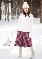You can combine a short skirt with low boots, and under the bottom it is better to wear tight tights to match the color of the clothes. Many designers have come to the common opinion that it is better to choose pantyhose for low shoes in the color of clothes, and not in boots.