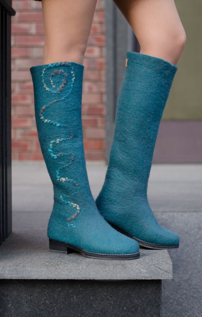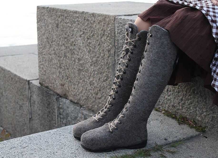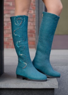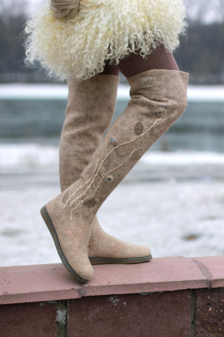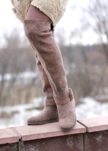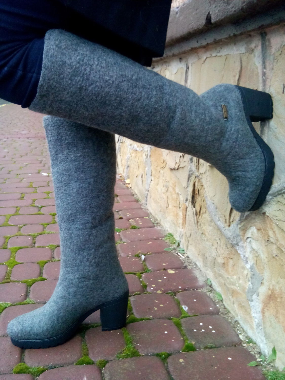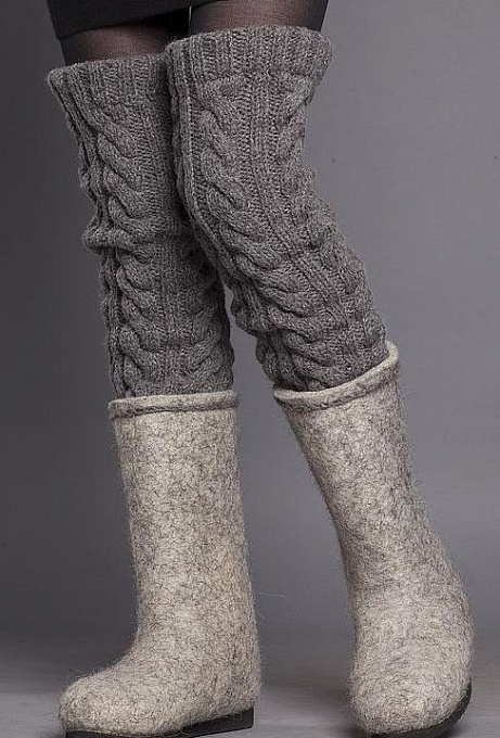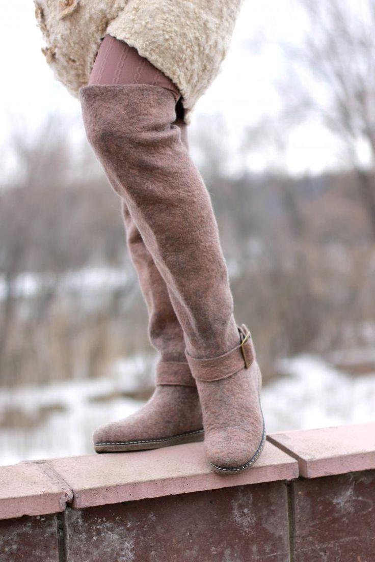 - High felt boots. These shoes belong to the most fashionable in style and decoration. High felt boots can be compared with classic shoes, like felt boots. Shoes are perfect for seasonal wear and for a fashion outlet. There are on sale models specially designed for everyday wear or to create a business image. All of them share a high leg. Styles can look very original. So, some high felt boots are supplied with a steady heel-horseshoe. A high heel, wedge or high platform gives you a stylish, fashionable look. Strict models of high felt boots slim legs.
