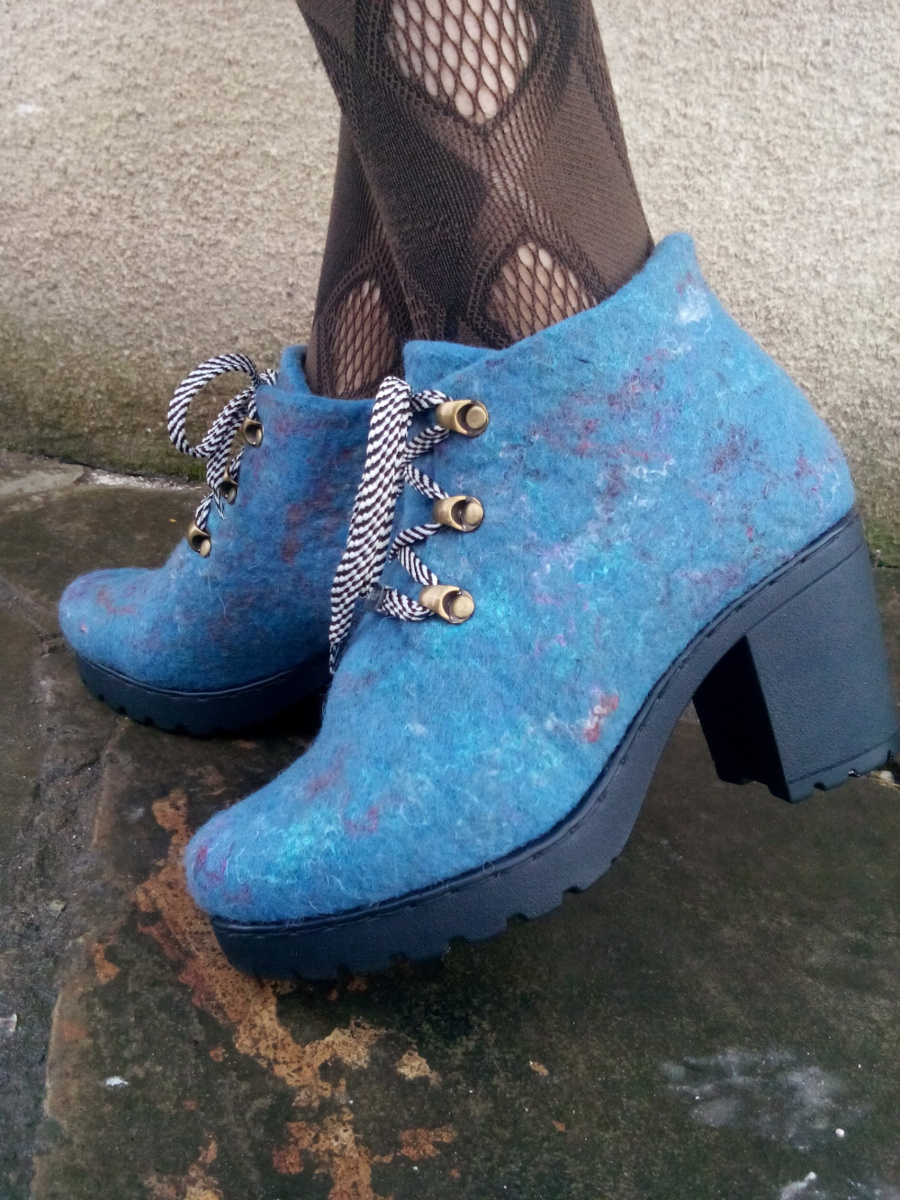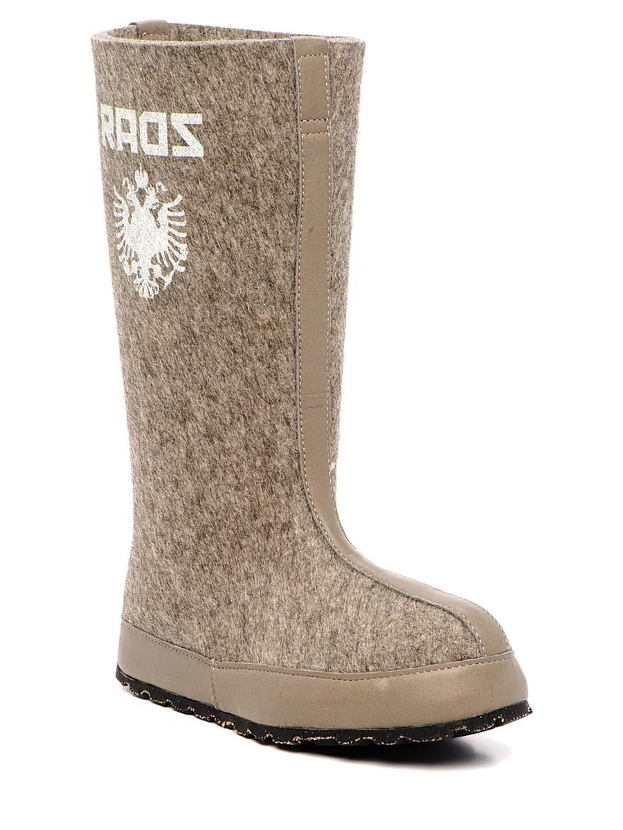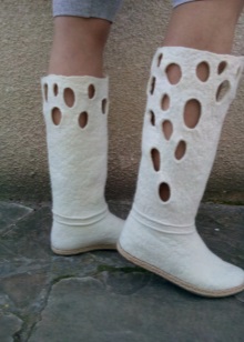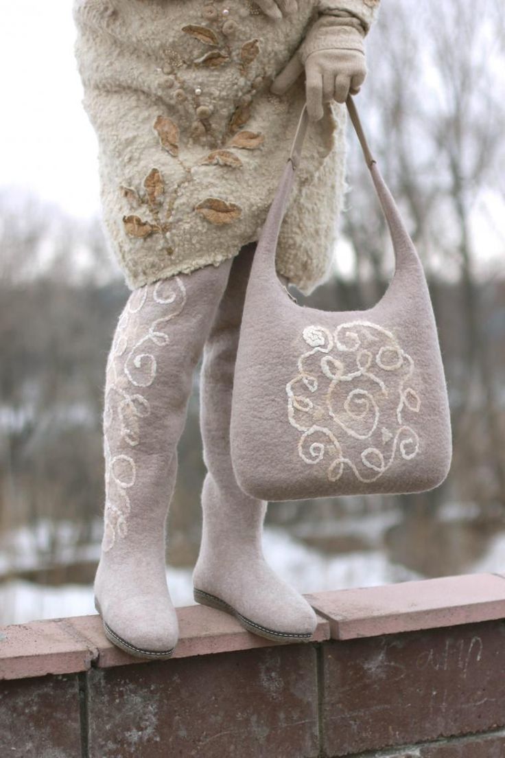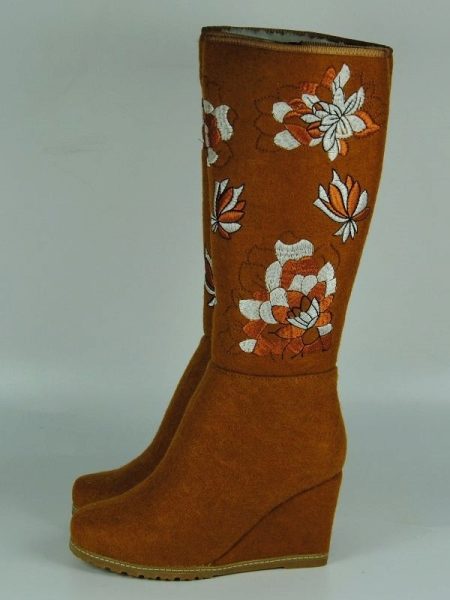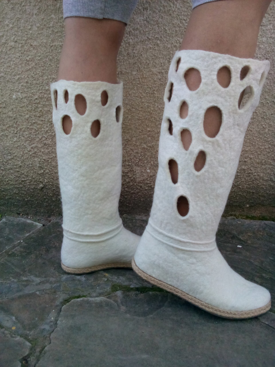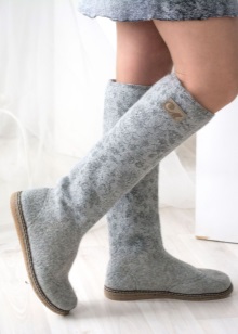 - High felt boots. These shoes belong to the most fashionable in style and decoration. High felt boots can be compared with classic shoes, like felt boots. Shoes are perfect for seasonal wear and for a fashion outlet. There are on sale models specially designed for everyday wear or to create a business image. All of them share a high leg. Styles can look very original. So, some high felt boots are supplied with a steady heel-horseshoe. A high heel, wedge or high platform gives you a stylish, fashionable look. Strict models of high felt boots slim legs.