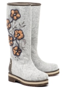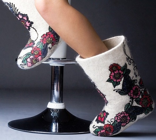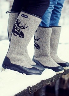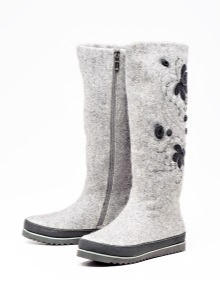 However, fashion does not stand still, and now at the fashion shows you can see "improved" models of felt boots, for example, with a leather insert on the toe and on the bottom. Such shoes as a result will look better and more accurately. High models of felt boots are not covered with felt on the heel, so they are easier to keep in their original form. In general, the presence or absence of a heel or embroidered patterns will determine the type of model.