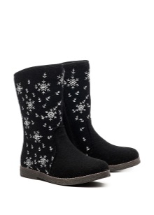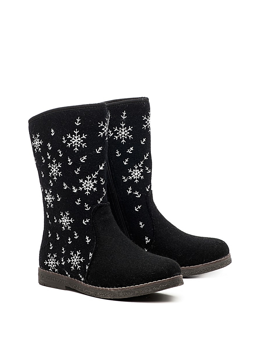 - Felt boots with embroidery. Boots can be bright colors or be similar to black suede shoes with black decor in the form of embroidery. Various trends in the design of such shoes help with the individual selection of felt boots. Today, stylish boots can be decorated with ethnic patterns, bright embroidery or tone-on-tone patterns. A company of such a shoe will be made by jeggings or skinny jeans of any shades. Boots can be worn tight beige tights. And black felt boots on a high wedge will look great with translucent tights.