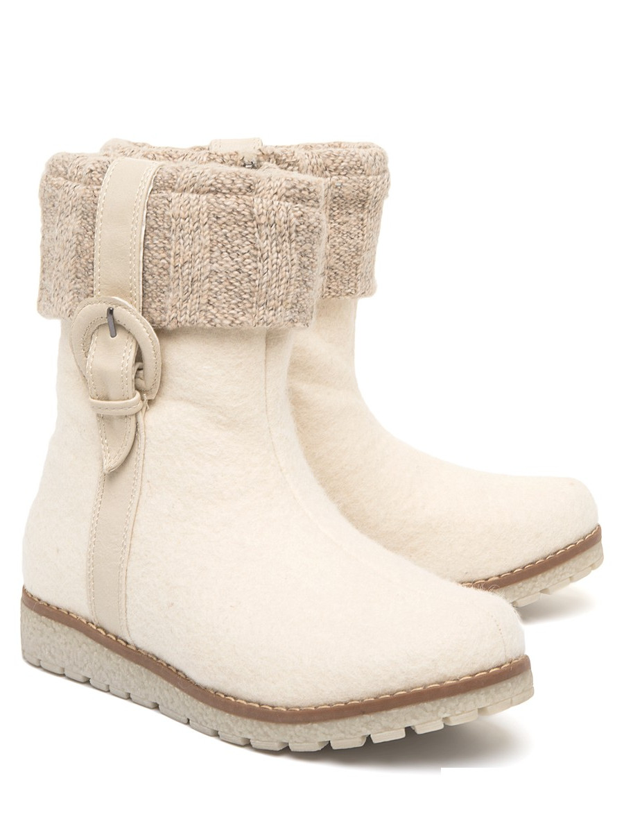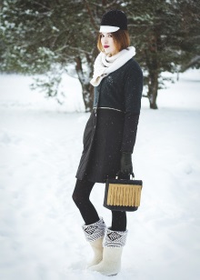 The color and style of such boots differs depending on the brand that owns the fashionable line of footwear made of felt and felt. It should be noted that when combining felt boots made of light materials, the rest of the wardrobe is often selected in a contrasting color. Conversely, black boots add elegance to the image, but do not weight it with a choice of dark colors. And it is best to proceed from a set of winter colors and their combinations - white, gray, beige, creamy, gray-blue, light pink shades.