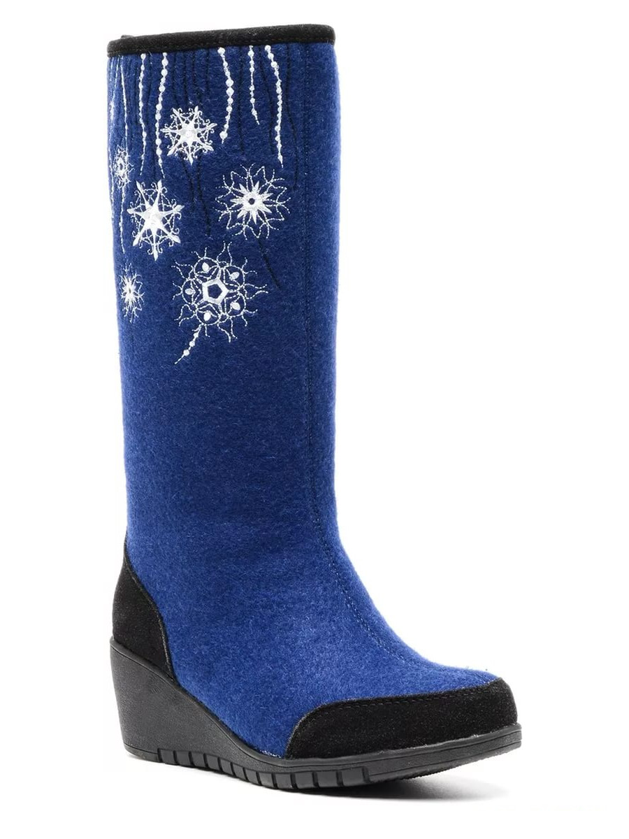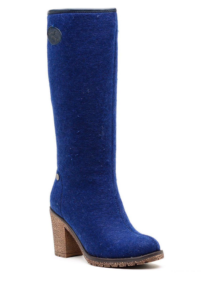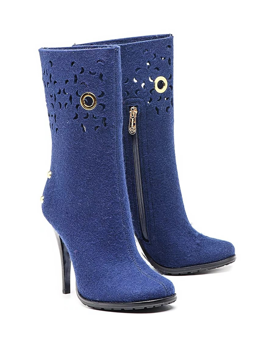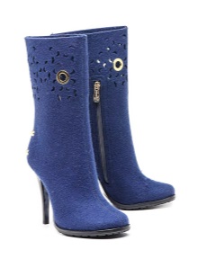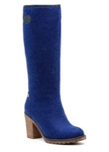 Boots with high heels are increasingly becoming a hit. These navy blue felt boots look fashionable and elegant. They can go to work, on a visit, for a walk.