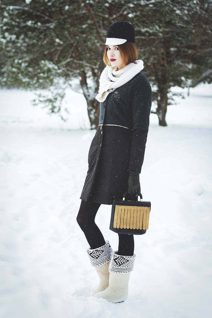 Walking in felt boots is a pleasure. They do not look old-fashioned, do not get out of the general style canvas, keep warm. Shoes made of wool, so knitted things and hats will help create a harmonious winter look.