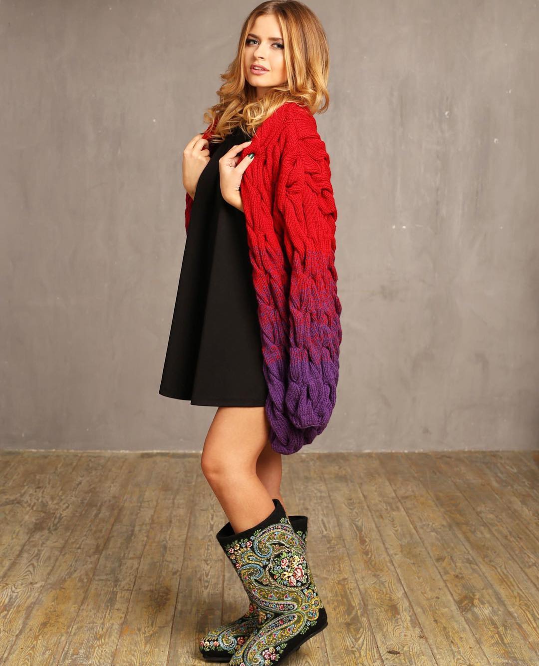 The combination of felt and wool has been known for a long time, so the felt shoes will harmoniously look with knit knee-length dresses. Particularly bold women of fashion can go to the street in felt boots in combination with a dress in the style of boho or oversize, wearing a long volumetric scarf with an ethnic pattern.