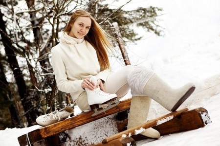 The same requirement applies to the choice of warm tights for high felt boots. However, in the case of high boots, there is a reverse advice. Those who want to visually make the legs longer in combination with high boots, preference should be given to pantyhose tone to tone. What is completely unsuitable for felt boots is nylon pantyhose.