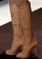 With a knitted boots look great and a variety of skirts: classic straight and with ruffles, denim and light chiffon. Openwork boots can emphasize narrow or cropped trousers, which can have both low and high waists.