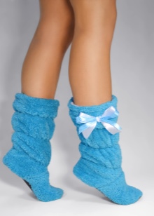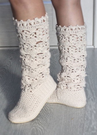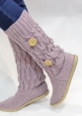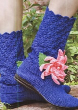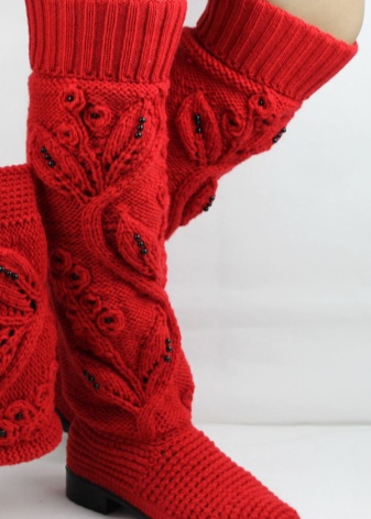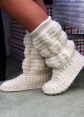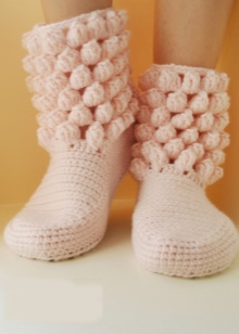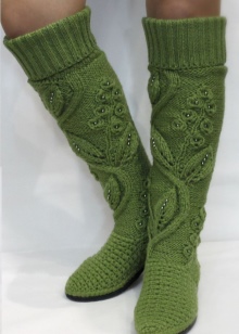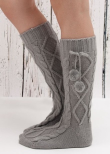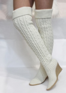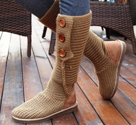 Among the variety of boots apart is simple home knitted shoes. Such a warm option gives not only warmth to the legs, but also a feeling of comfort.