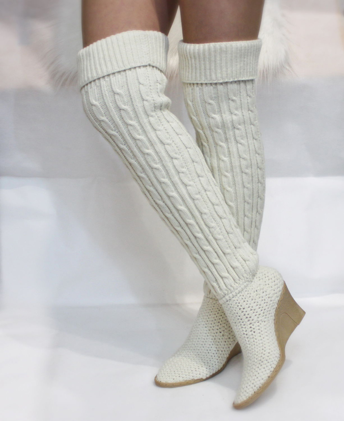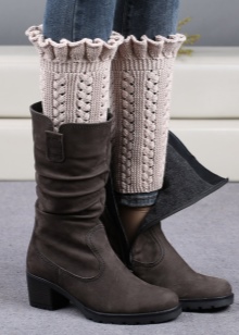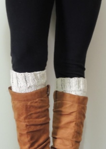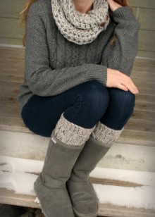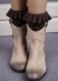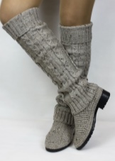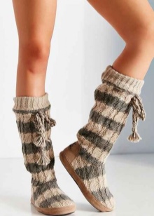 Knitted boots can be combined with almost all wardrobe items, but clothing is selected for the model of boots. These shoes go well with dresses, jeans, skirts, shorts and pants.
