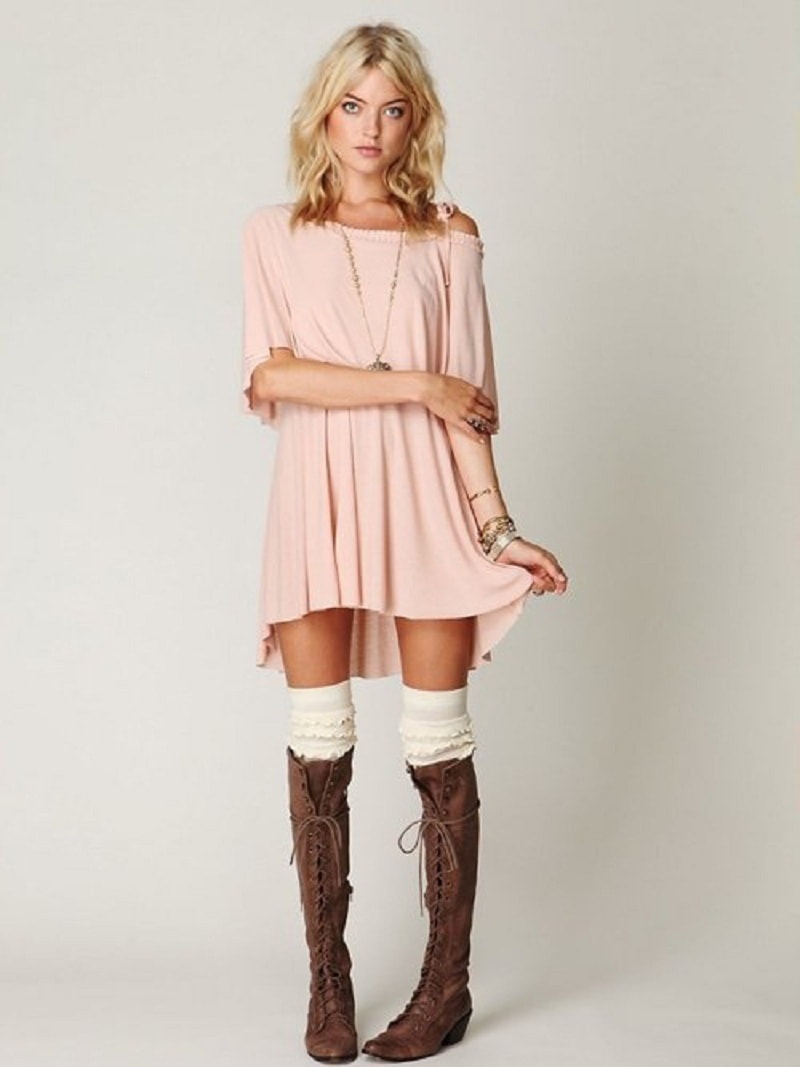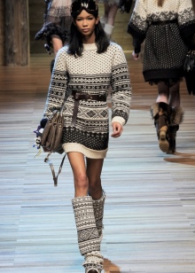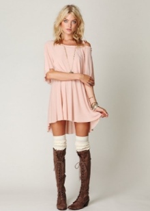 Summer dresses and sundresses look wonderful with knitted boots. The dress can be both free and fitted cut, but it is important that it has a more playful and feminine style.