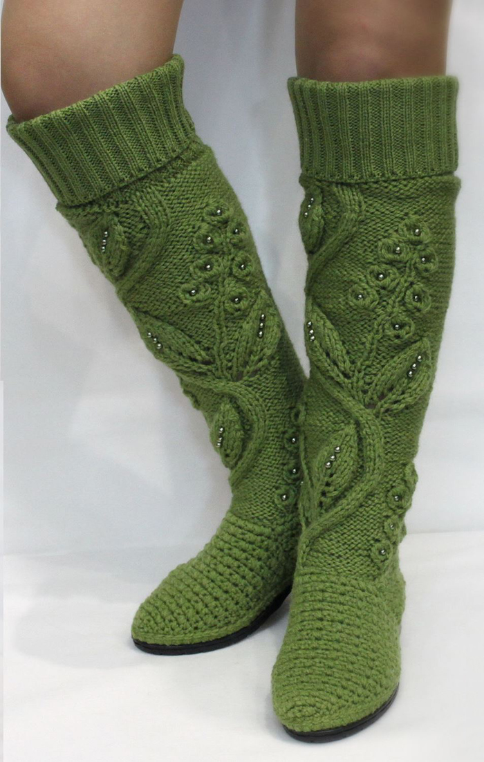 Another way is more difficult, but guarantees exclusivity. Those who are familiar with knitting and crocheting can create a pair of boots with their own hands. The Internet contains an unimaginable set of various knitting patterns and patterns from which you can choose the ones you like.